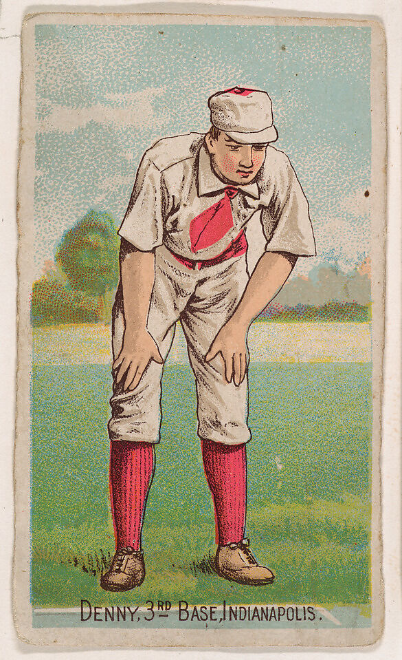(Jerry) Denny, 3rd Base, Indianapolis, trade card from the "Gold Coin" series (N284), issued by D. Buchner in 1887 to promote Gold Coin Chewing Tobacco. In the American Card Catalog, Burdick refers to the series as "Leading Baseball Players, Police Inspectors and Captains, Jockeys, and Actors." The images in this series do not always represent the specific athletes named.