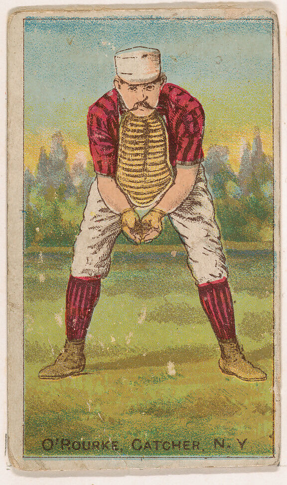 (Orator Jim) O'Rourke, Catcher, New York, trade card from the "Gold Coin" series (N284), issued by D. Buchner in 1887 to promote Gold Coin Chewing Tobacco. In the American Card Catalog, Burdick refers to the series as "Leading Baseball Players, Police Inspectors and Captains, Jockeys, and Actors." The images in this series do not always represent the specific athletes named.