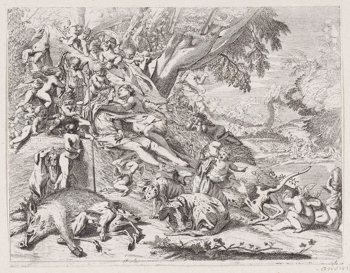 • Title: Venus and Adonis embracing after the hunt