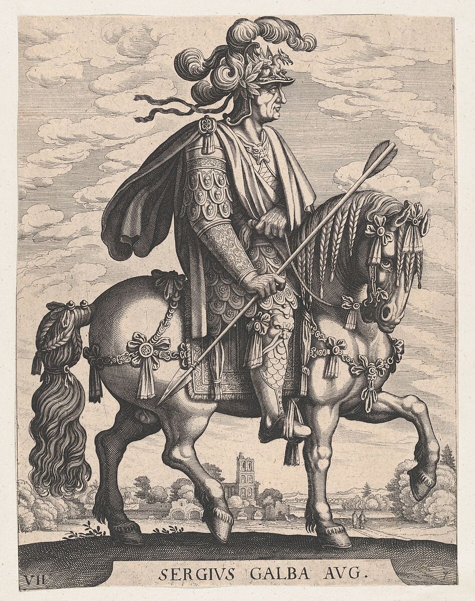 - Title: Plate 7: Emperor Galba on Horseback, from 'The First Twelve Roman Caesars' after Tempesta
