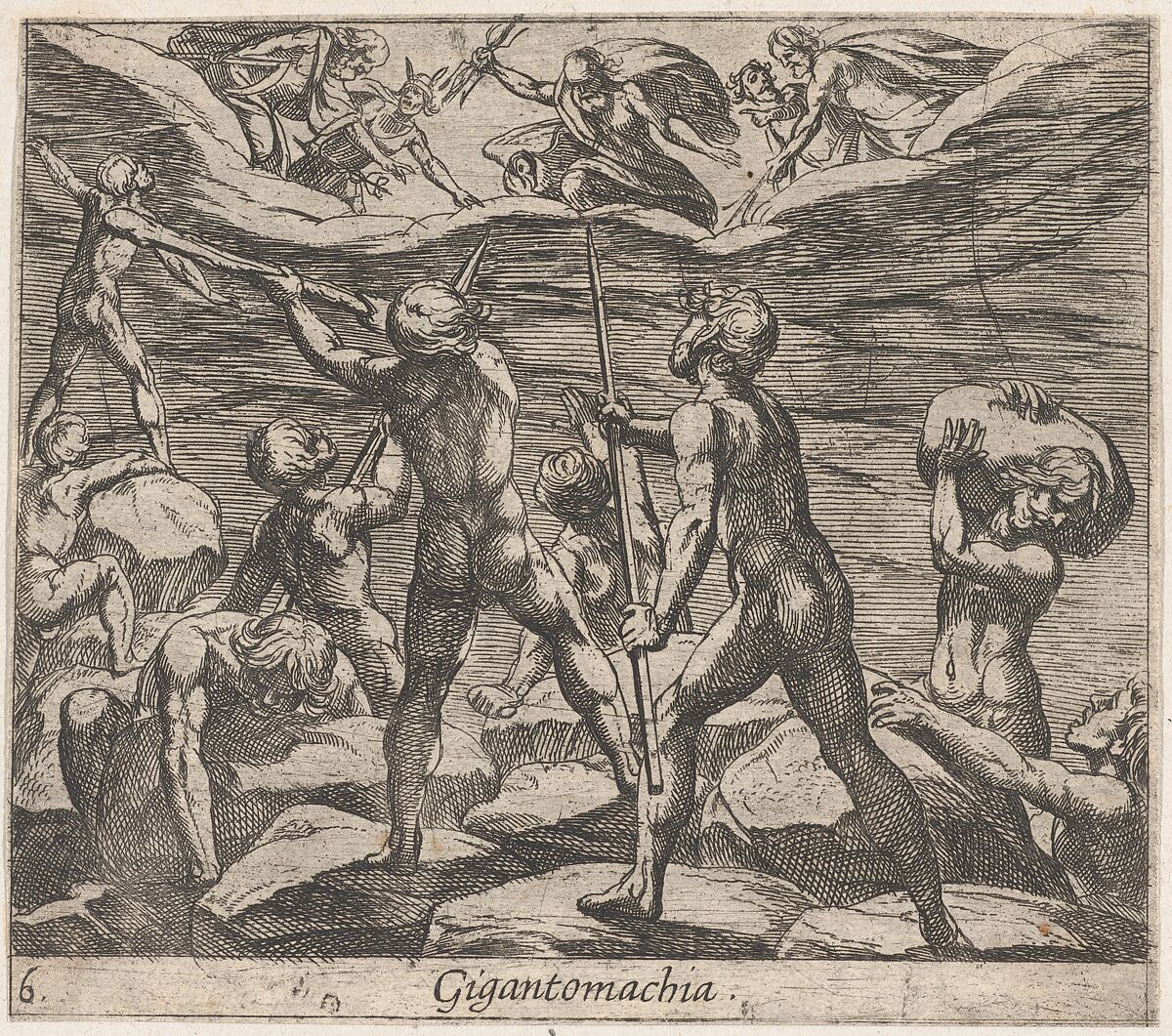 - Title:Plate 6: The Giants Attempting to Storm Olympus (Gigantomachia), from Ovid's 'Metamorphoses'