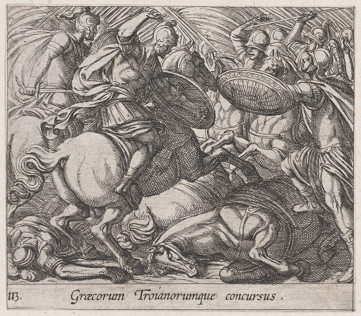- Title: Plate 113: The Greeks Battling the Trojans (Graecorum Troianorumque concursus), from Ovid's 'Metamorphoses'