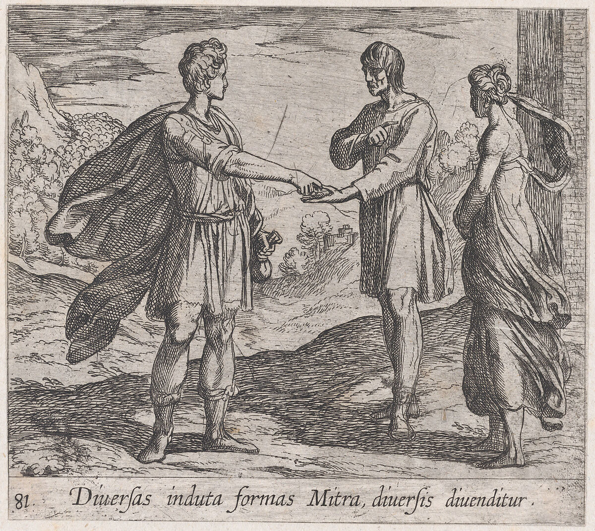 Plate 81: Erysichthon Selling his Daughter (Diversas induta Mitra diversis divenditur), from Ovid's 'Metamorphoses'