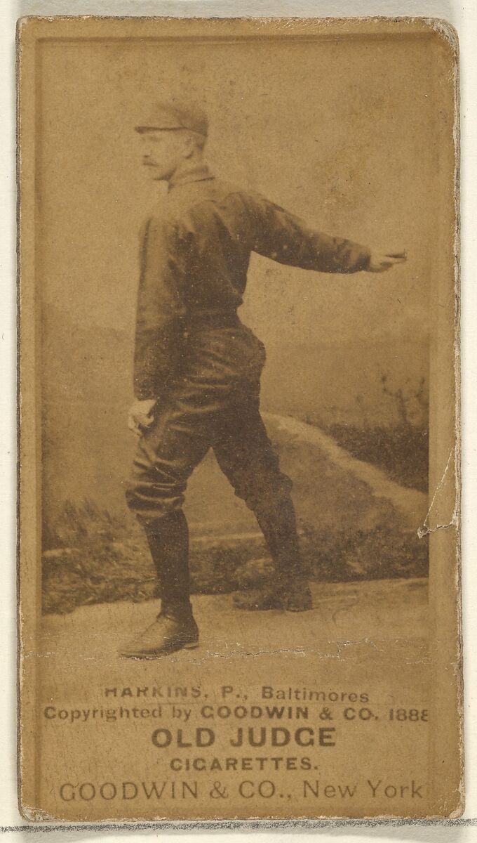 - Title:Harkins, Pitcher, Baltimore Orioles, from the Old Judge series (N172) for Old Judge Cigarettes