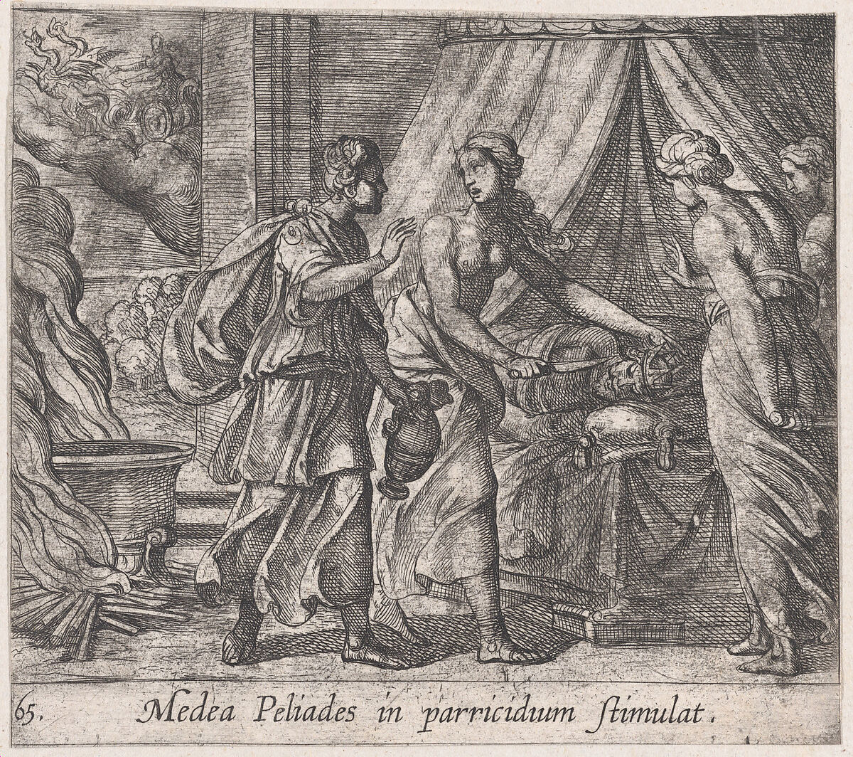 - Title: Plate 65: Medea Urging the Daughters of King Pellias to Murder Their Father (Medea Peliades in parricidium stimulat), from Ovid's 'Metamorphoses'