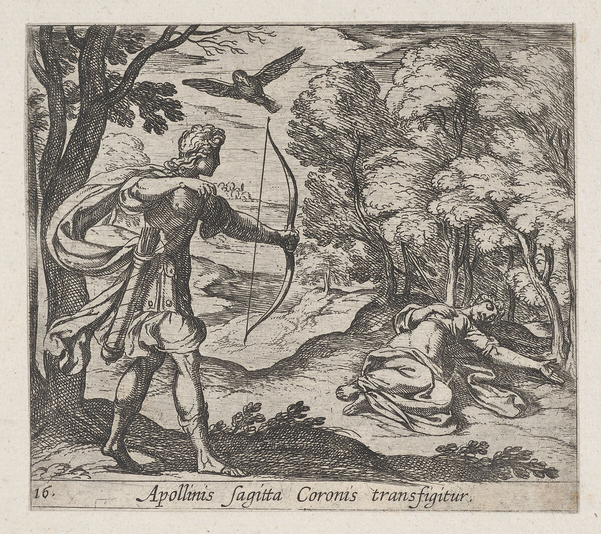 - Title: Plate 16: Apollo Killing Coronis (Appolinis sagitta Coronis transfigitur), from Ovid's 'Metamorphoses'