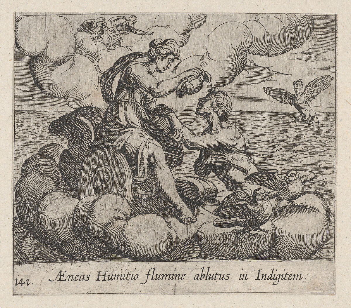 - Title:Plate 141: The Immortalization of Aeneas (AEneas Humitio flumine ablutus in Indigitem), from Ovid's 'Metamorphoses'