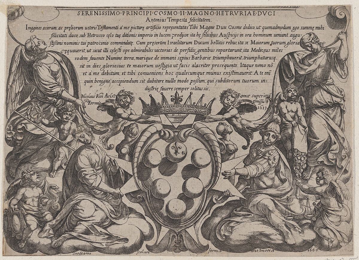 Frontispiece to "The Battles of the Old Testament" with the arms of the Medici Crowned by Two Putti