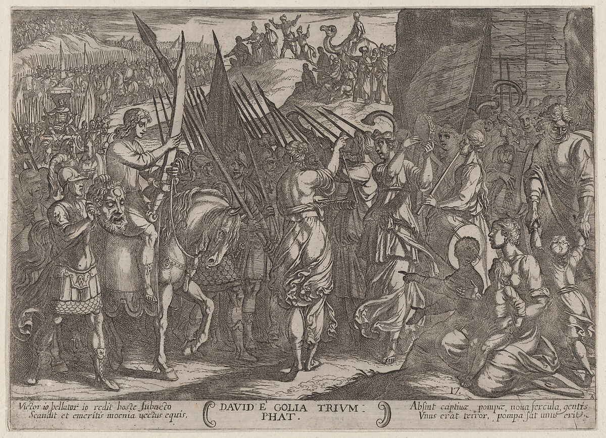 - Title:Plate 17: David Returning in Triumph with the Head of Goliath, from "The Battles of the Old Testament"