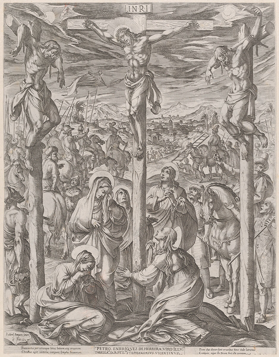 - Title:Christ crucified between the two thieves, the three maries at the foot of the cross