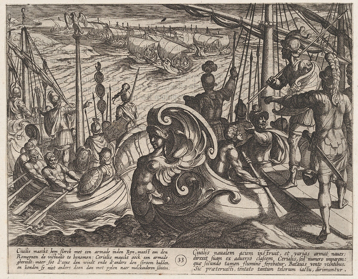 - Title: Plate 33: Dutch and Roman Flotillas on the Rhine, from The War of the Romans Against the Batavians (Romanorvm et Batavorvm societas)