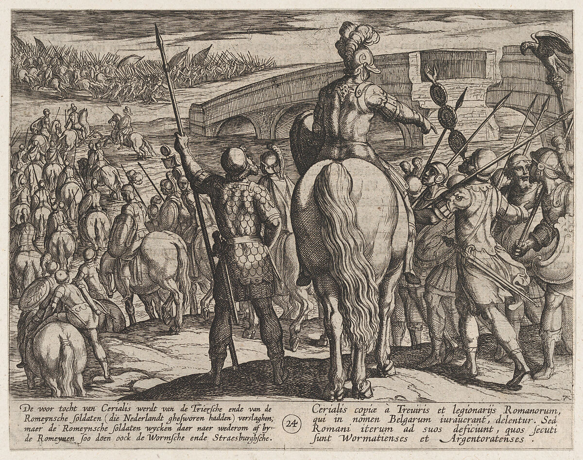 Plate 24: The Advance Guard of the New Roman Troops Turned Back, from The War of the Romans Against the Batavians (Romanorvm et Batavorvm societas)