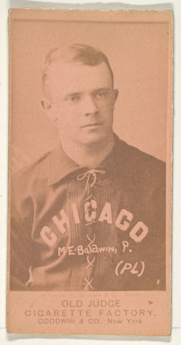 - Title:M.E. Baldwin, Pitcher, Chicago, from the Old Judge series (N172) for Old Judge Cigarettes