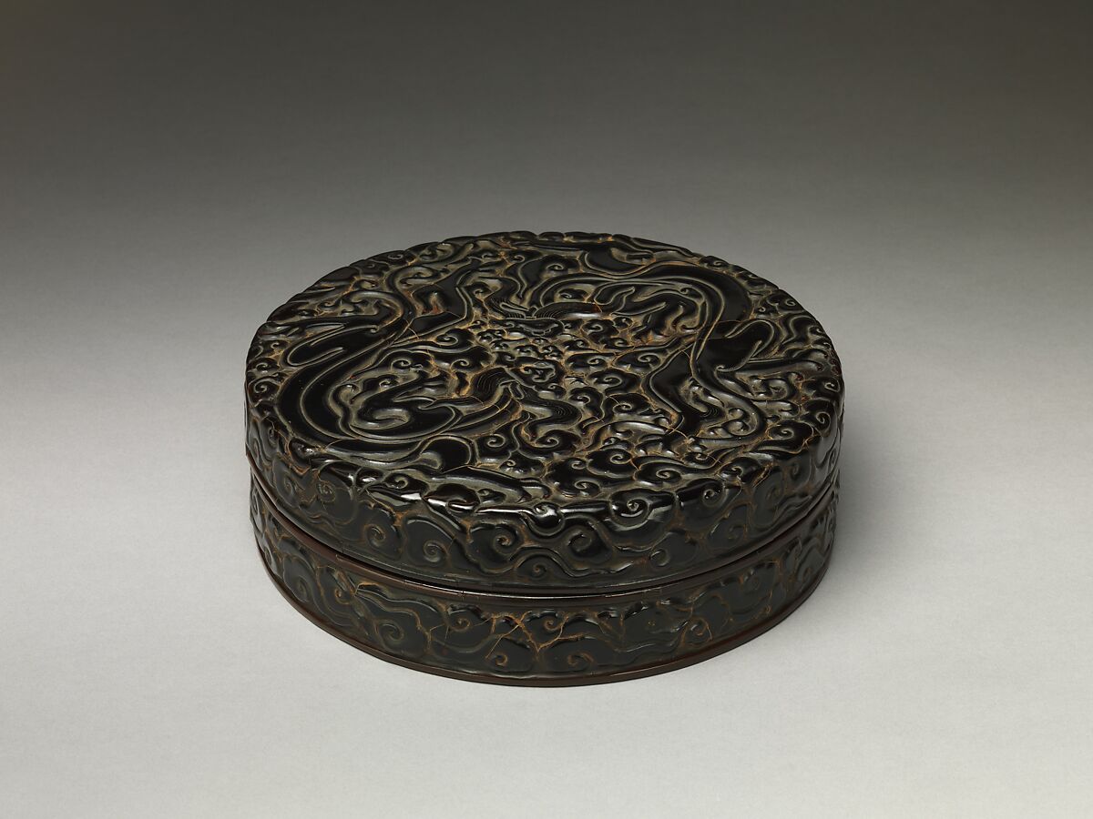 Known as chi, the feline dragons that curve along the surface of this box were inspired by comparable creatures found on Bronze Age vessels, which were rediscovered during the Song dynasty and often reinterpreted in the arts of that period. Although they lack the large horns, prominent snouts, and scaled body of the typical Chinese depiction of the dragon, chi dragons are also regarded as auspicious and protective.