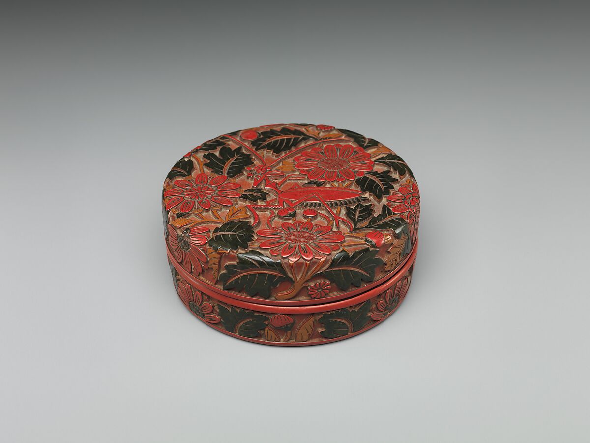 - 明中期 雕漆剔彩螳螂秋菊紋盒