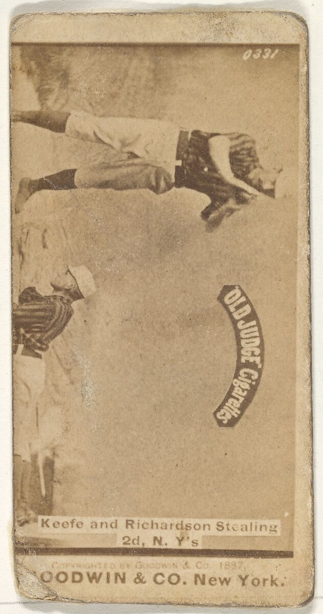 - Title:Keefe and Richardson Stealing 2nd Base, New York, from the Old Judge series (N172) for Old Judge Cigarettes