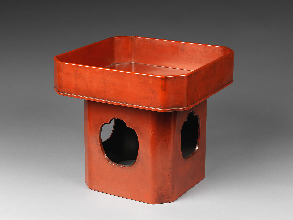 In the medieval period, Negoro vessels were used primarily by monks residing in Buddhist temples and Shinto shrines, but aristocrats and high-ranking warriors also used them. Negoro ware is characterized by its strong wooden core, functional form, and the layered application of black and red lacquer. Over years of use, the uppermost layer of red lacquer rubs off and the underlying black layer becomes visible. Table trays (tsuigasane) are used in Shinto shrines to hold the rice that is tossed to drive away evil, part of the “rice-throwing” ceremony.