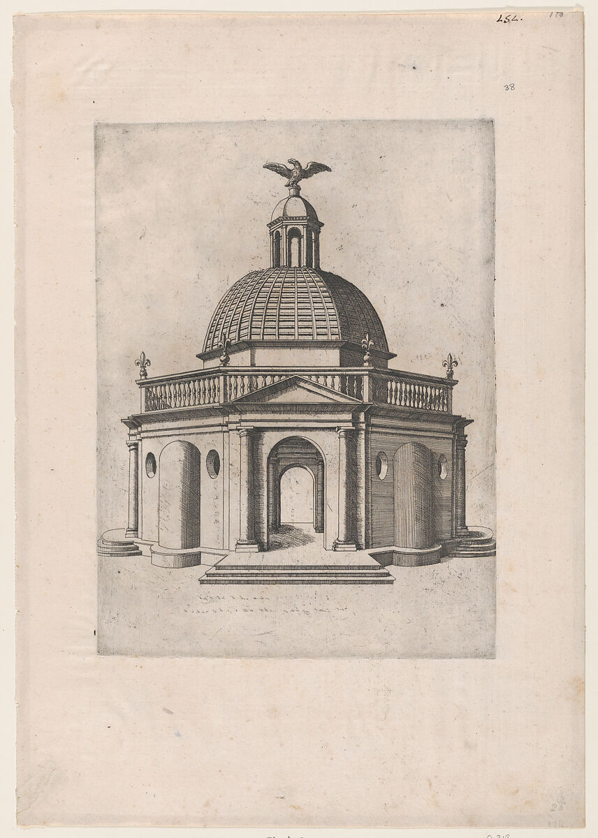 - Title: Octagonal Temple with a dome, surmounted by a domed turret, crowned with an eagle, from "Speculum Romanae Magnificentiae"