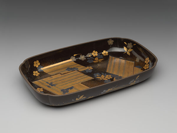 - Title: Tray with decoration of cherry blossoms and floating rafts