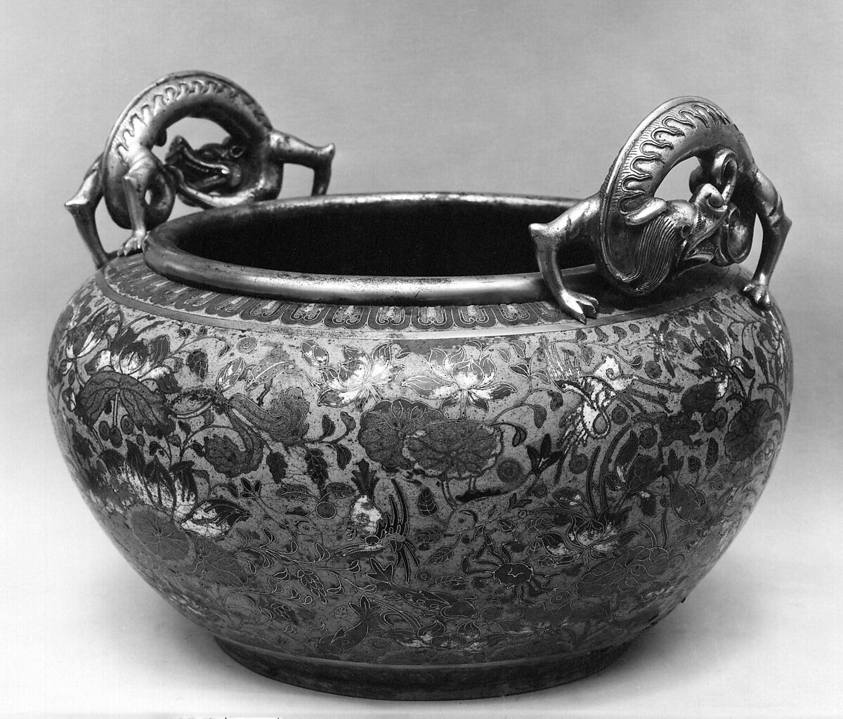 - Dimensions: H. at handles 12 in. (30.5 cm); Diam. 15 in. (38.1 cm); Diam. of rim 11 1/4 in. (28.6 cm); Diam. of foot 9 in. (22.9 cm)