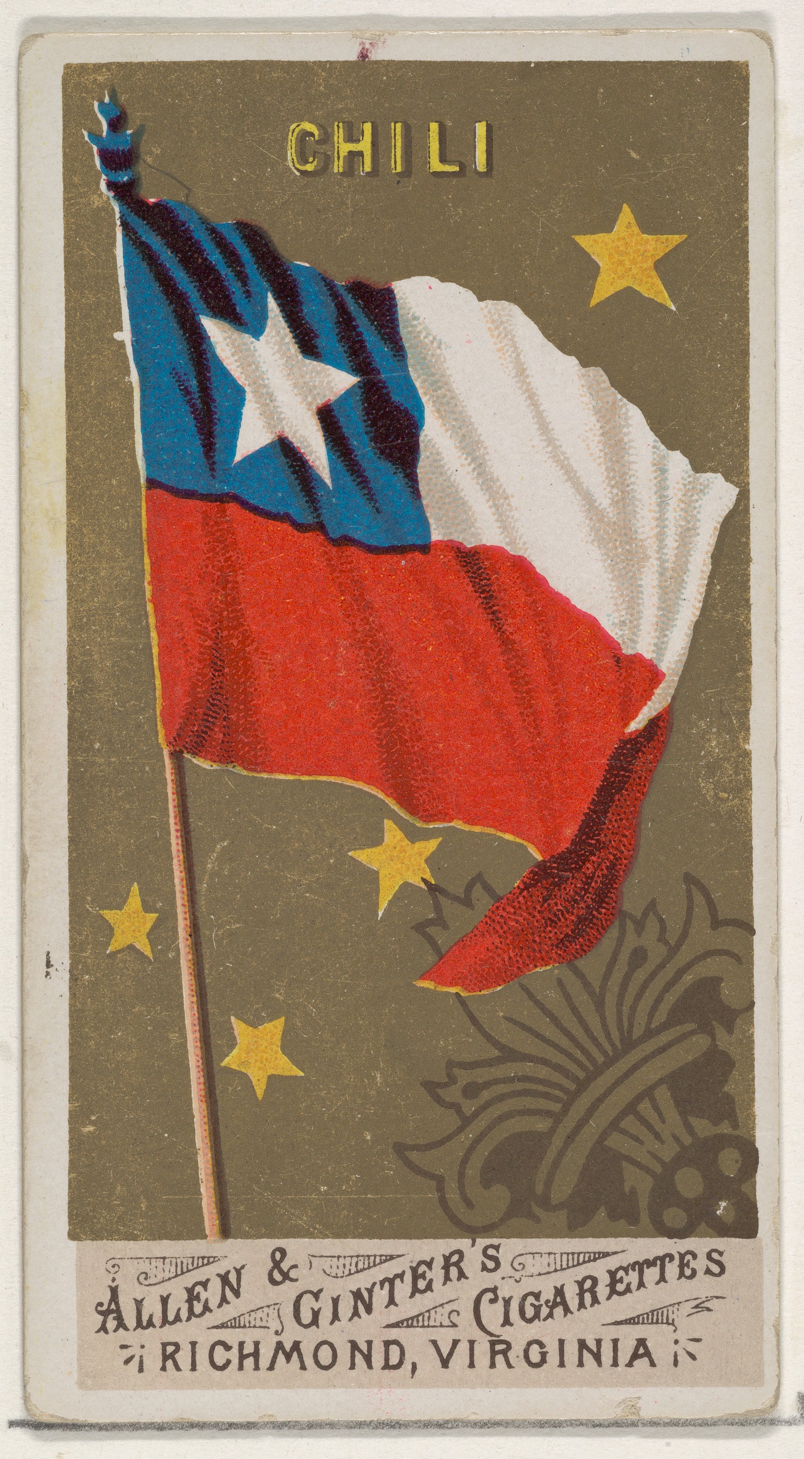 Chile, from Flags of All Nations, Series 1 (N9) for Allen & Ginter Cigarettes Brands