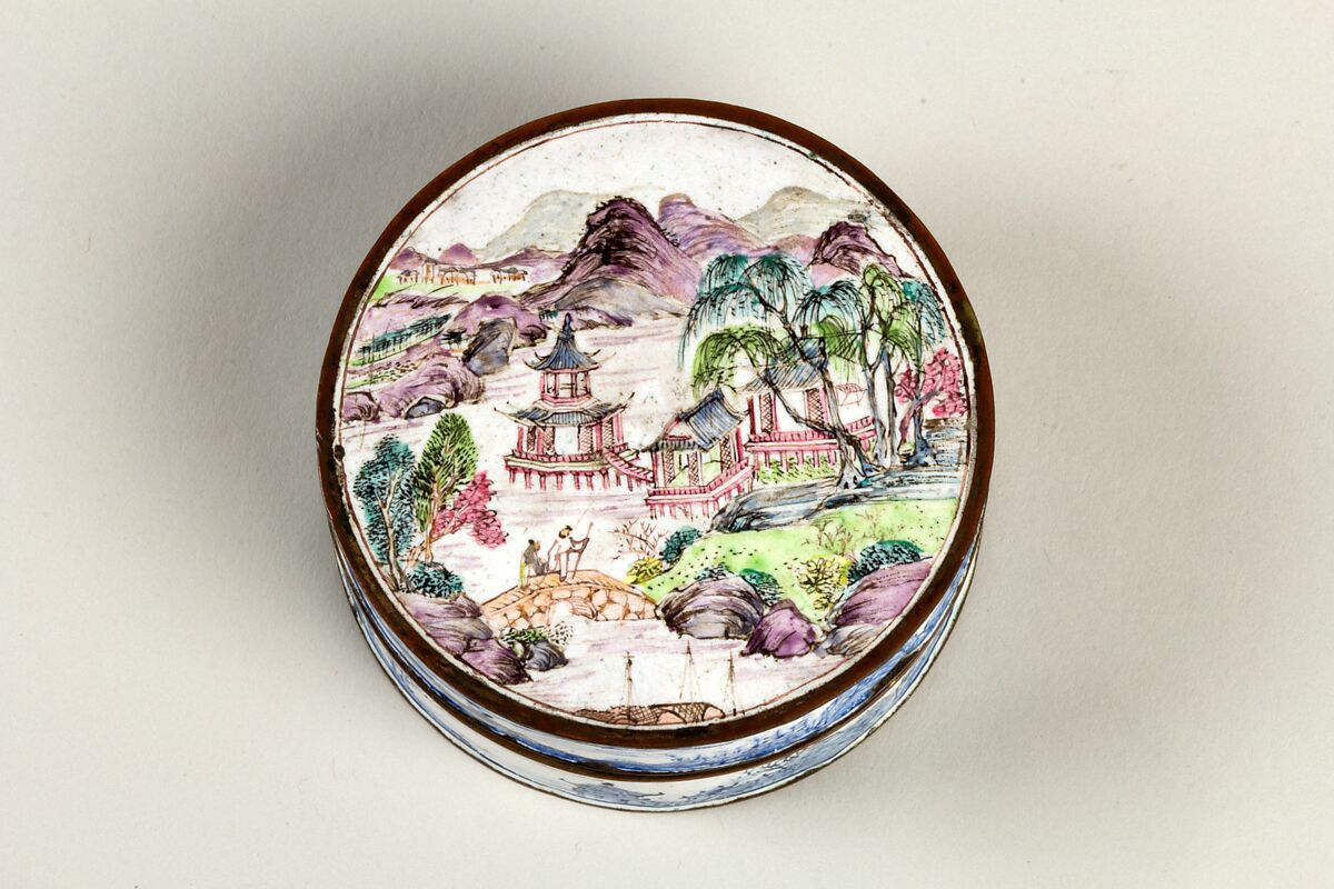 - 清乾隆 銅胎畫琺瑯山水圖蓋盒