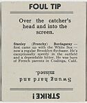 - Title:Stan Bordagaray; verso: Foul Tip/Strike!