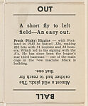 - Title: Frank Higgins; verso: Out/Ball