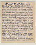 - Title: "Mickey" Cochrane; verso: Diamond Stars, No. 9, Fielding Tips-The Catcher's Throw (1935 Averages)