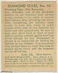 Roy Mahaffey; verso: Diamond Stars, No. 10, Pitching Tips-The Recovery (1934 Averages)