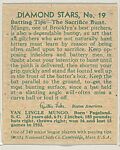 Van Mungo; verso: Diamond Stars, No. 19, Batting Tips-The Sacrifice Bunt (1934 Averages)