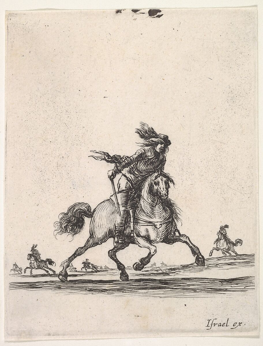- Title: A horseman galloping towards right with sword in hand, other horsemen in the background, from "Various cavalry exercises" (Diverses exercices de cavalerie)