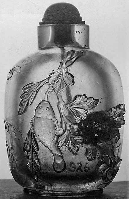 - Title: Snuff Bottle with Peony, Fish, and Bat