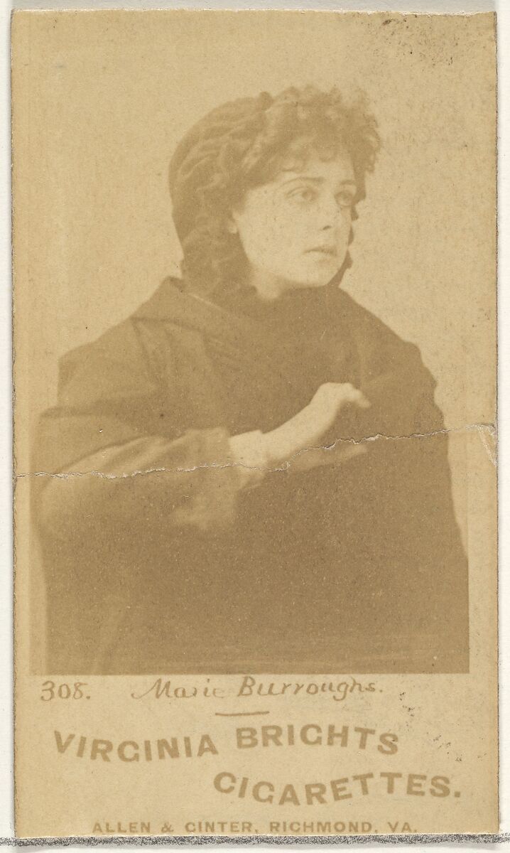 - Title:Card 308, Marie Burroughs, from the Actors and Actresses series (N45, Type 1) for Virginia Brights Cigarettes