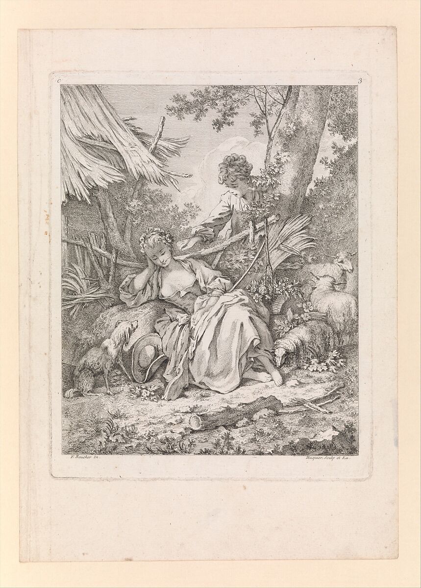 - Title: Plate 3: Shepherd tickling a sleeping Shepherdess with a piece of straw, from Troisieme Livre de Sujets et Pastorales (Third Book of Subjects and Pastorals)