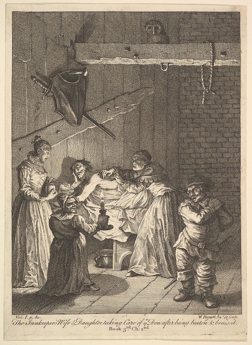 The Innkeeper's Wife and Daughter Taking Care of ye Don after Being Beaten and Bruised (Six Illustrations for Don Quixote)