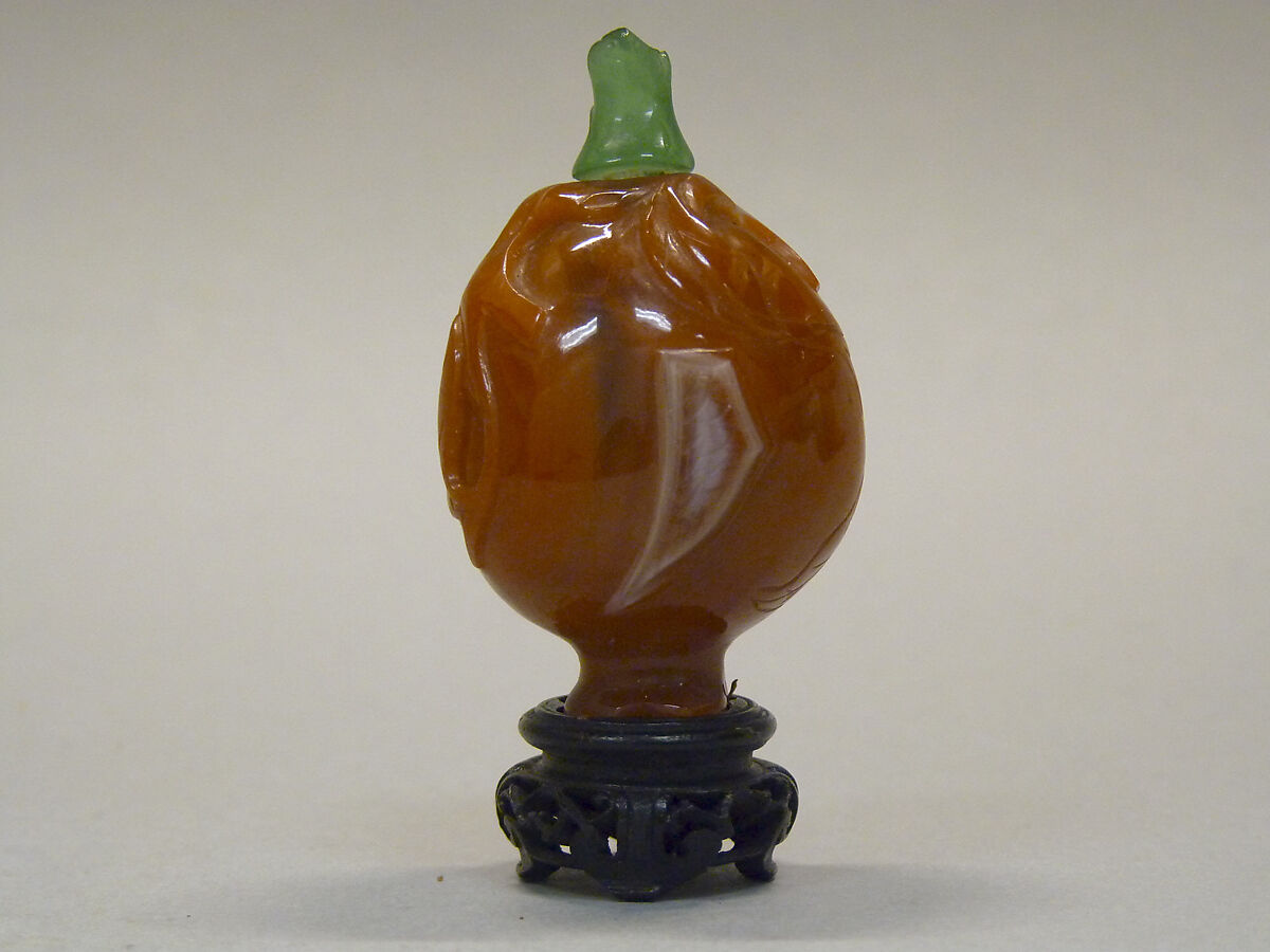 - Medium: Carnelian agate with green glass stopper