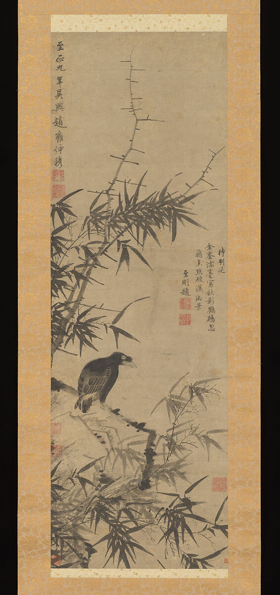 - 元 趙雍(款) 鸜鵒竹影圖 軸
