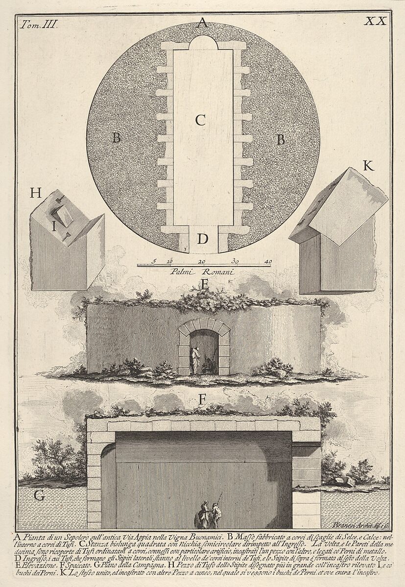 - Title: Plan of a tomb on the Appian Way in Vigna Buonamici (Pianta di un sepolcro sull'antica Via Appia nella Vigna Buonamici), from "Le Antichità Romane"