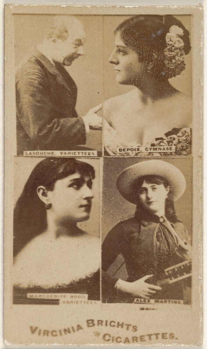 - Title: Lasouche, Variettees/ Depoix, Gymnase/ Marguerite Hood, Variettees/ Alex Martins, from the Actors and Actresses series (N45, Type 4) for Virginia Brights Cigarettes