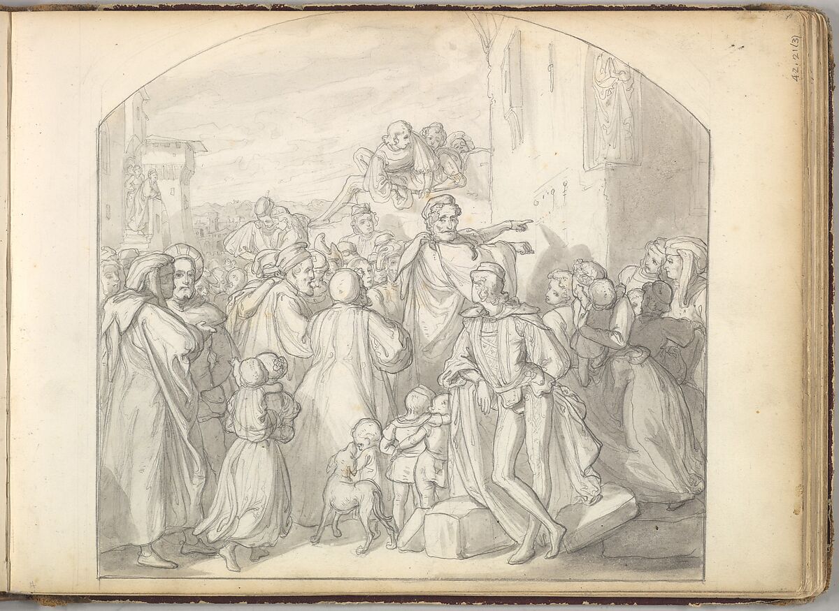 - Title: An Artist Drawing on Wall of a Church Watched by a Crowd