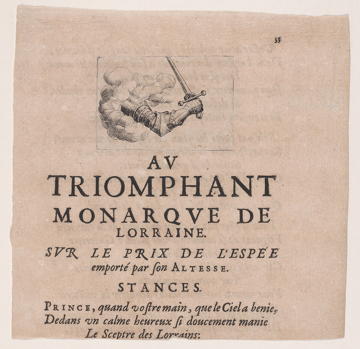 - Title: Arm Emerging from a Cloud Holding a Sword, from "Le Combat a la Barrière"