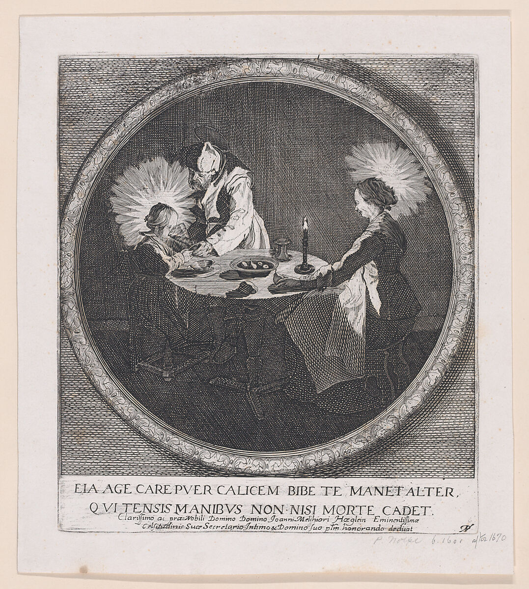 - Title: Reverse Copy of Le Benedicite, estampe appelée aussi La Sainte Famille a Table et St. Joseph Faisant Boire L'Enfant Jésus (The Grace, also called The Holy Family at the Table and St. Joseph Giving the Christ Child a Drink)