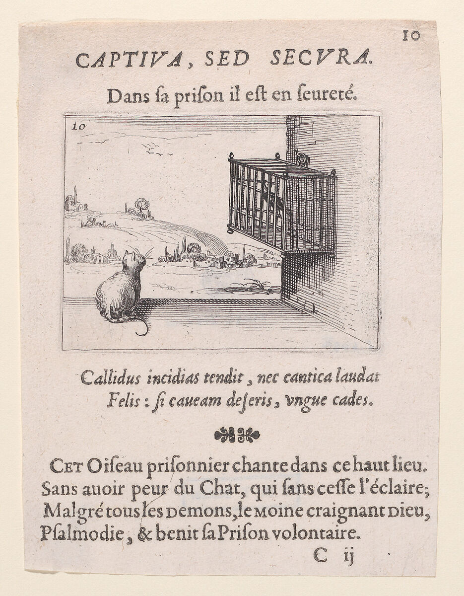 - Title: Le Chat Guettant L'Oiseau en Cage (The Cat Watching the Bird in the Cage), plate 10 from "Lux Claustri ou La Lumière du Cloitre" (The Light of the Cloisters)