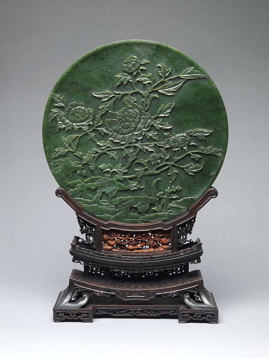 - 清中期 碧玉牡丹紋插屏