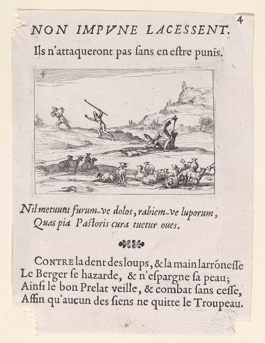 - Title: Les Bergers Défendant leur Troupeau (The Shepherds Defending their Herd), plate 4 from "Lux Claustri ou La Lumière du Cloitre" (The Light of the Cloisters)
