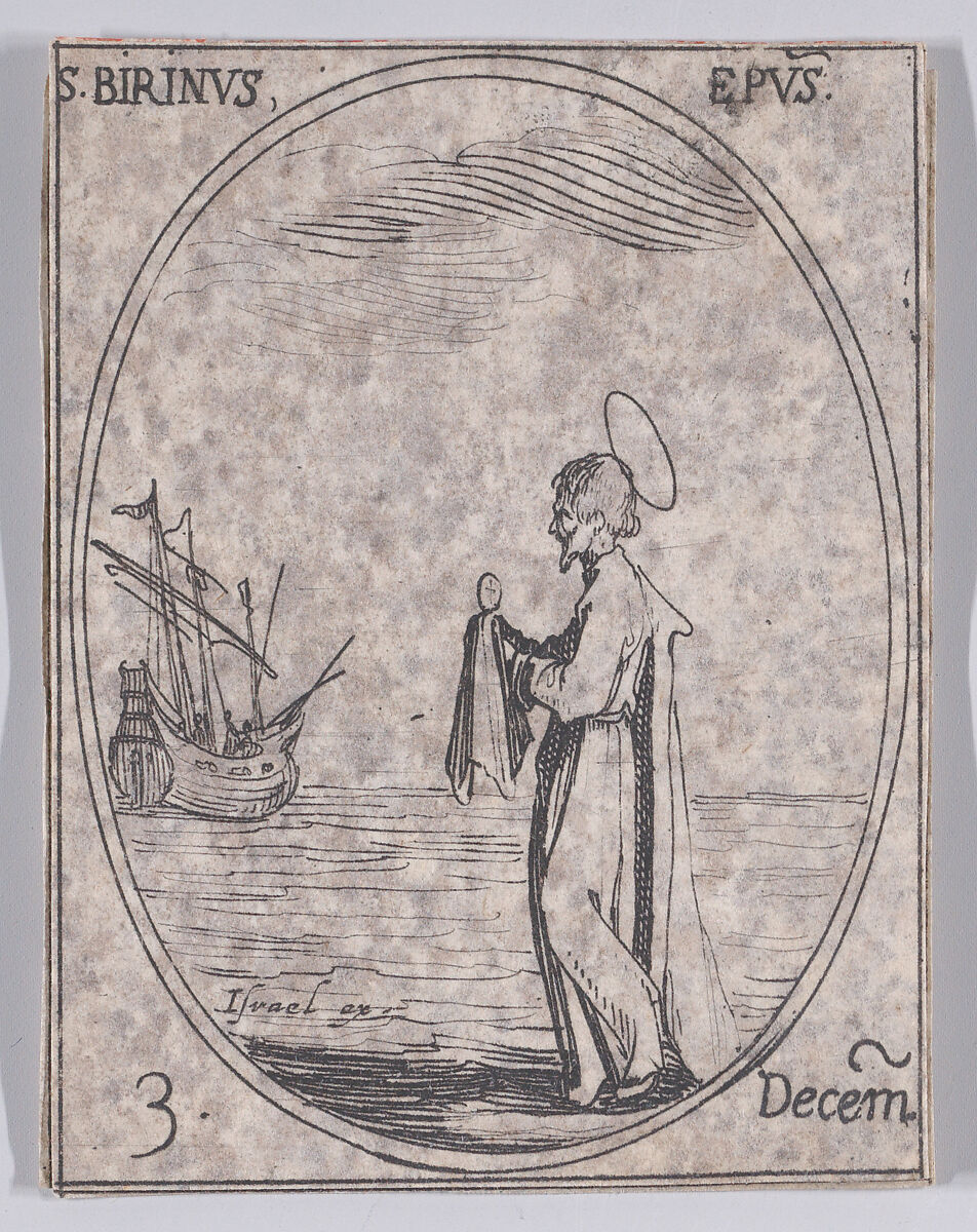 - Title: S. Birin, évêque (St. Birinus, Bishop), December 3rd, from "Les Images De Tous Les Saincts et Saintes de L'Année" (Images of All of the Saints and Religious Events of the Year)