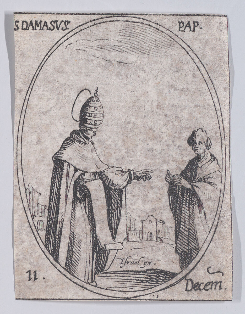 - Title: S. Damase, pape (St. Damasus, Pope), December 11th, from "Les Images De Tous Les Saincts et Saintes de L'Année" (Images of All of the Saints and Religious Events of the Year)