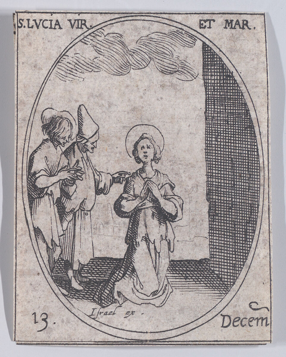 - Title: Ste. Lucie, vierge et martyre (St. Lucy, Virgin and Martyr), December 13th, from "Les Images De Tous Les Saincts et Saintes de L'Année" (Images of All of the Saints and Religious Events of the Year)