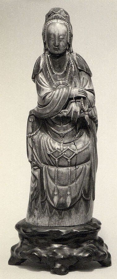 - Title: Seated Figure of Guanyin on Rock Base with Carved Armrest